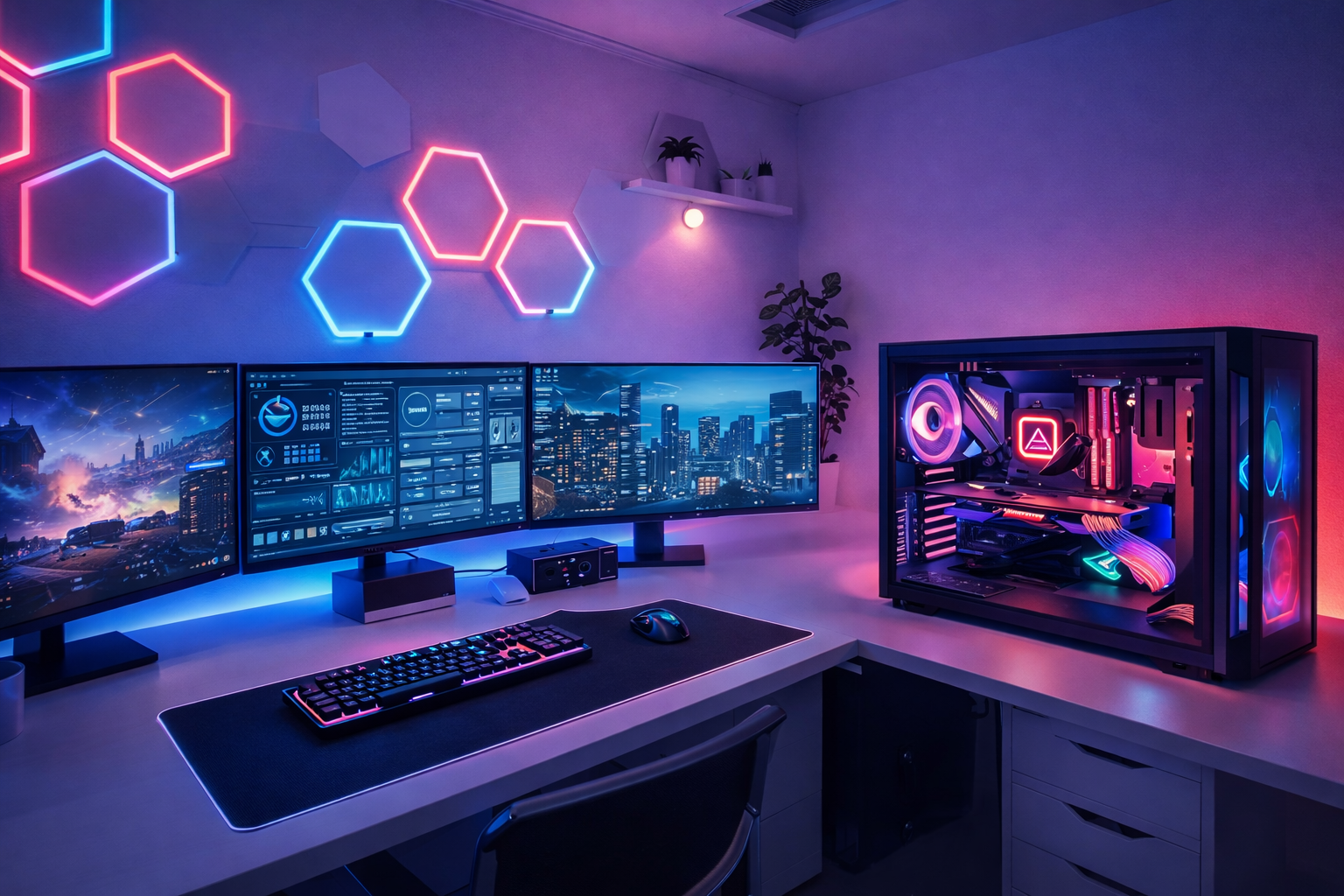 Build your perfect gaming station with spacious desks designed for multi-monitor setups and cable management.